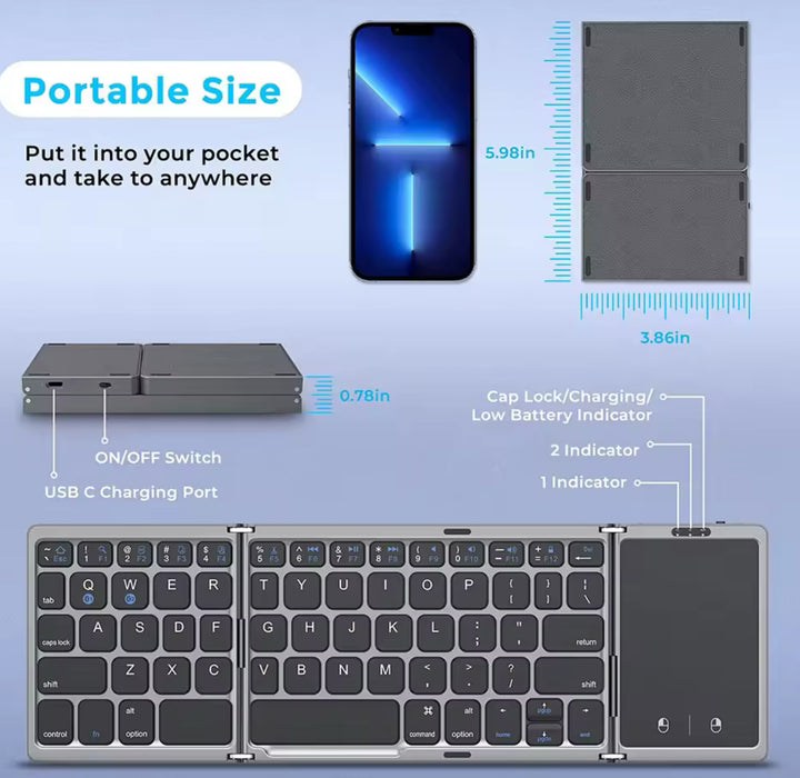 Compact and easy to carry, this folding keyboard fits effortlessly in your bag or pocket, making it the perfect companion for work or travel.